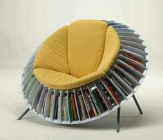 Jika kalian senang membaca buku, sangat tepat sekali memilih kursi dengan desain seperti ini. Sambil bersantai, kalian juga bisa rileks dengan buku bacaan yang disenangi. Tumpukan buku di samping kursi, sangat bisa untuk menghemat ruang. Tidak perlu lagi membeli lemari buku, cukup letakkan buku di samping kursi. Selain unik, furniture ini jelas menghemat ruang.