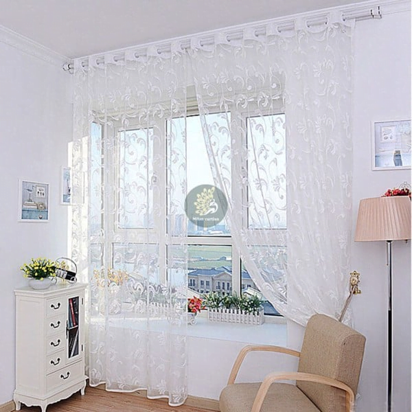 Dan tentunya perpaduan dinding putih dan tirai sifon putih bisa menjadi sempurna jika Anda tahu cara memilih furnitur yang tepat. Skema warna ini sangat lembut, sederhana dan elegan.
